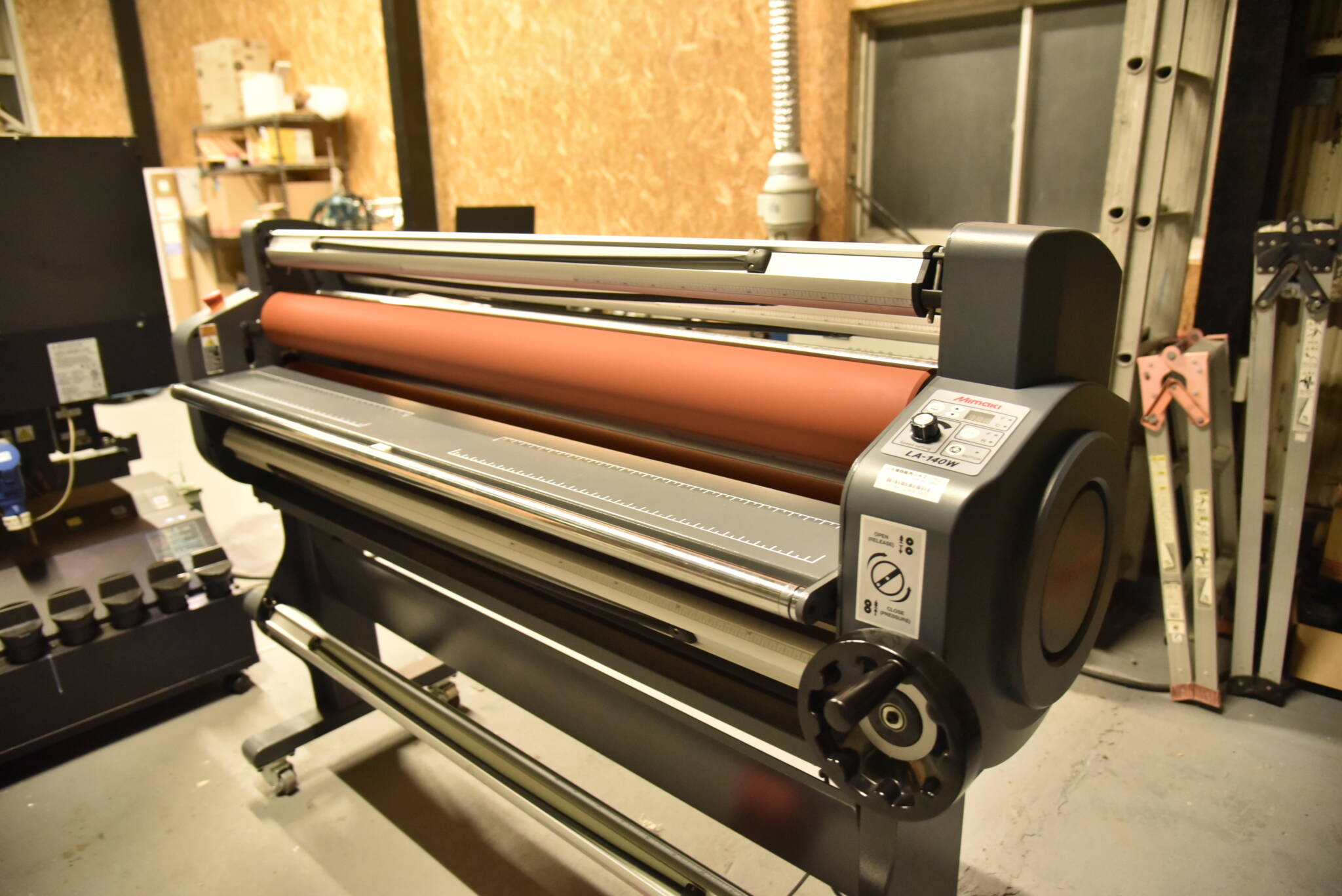 1380㎜対応の大型ラミネーターです。サイン出力後のラミネート加工に使用します。